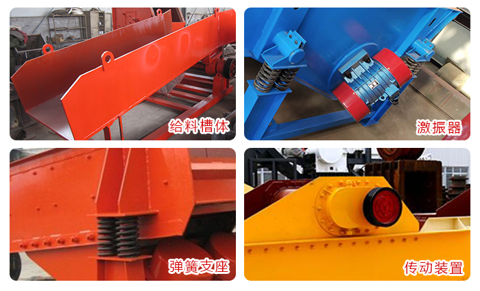 振動給料機是利用振動器中的偏心塊旋轉產生離心力,使篩廂、振動器等可動部分作強制的連續的圓或近似圓的運動。振動給料機是由給料槽體、激振器、彈簧支座、傳動裝置等組成。槽體振動給料的振動源是激振器,激振器是由兩根偏心軸(主、被動)和齒輪副組成,由電動機通過三角帶驅動主動軸,再由主動軸上齒輪嚙合被動軸轉動,主、被動軸同時反向旋轉,使槽體振動,使物料連續不斷流動,達到輸送物料的目的。