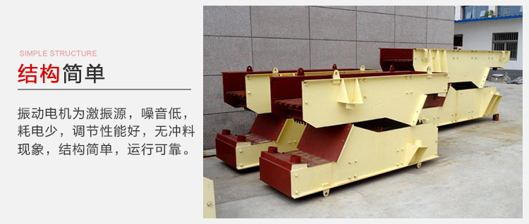 振動平穩,工作可靠,壽命可以調節激振力,可隨時改變和控制流量,調節方便穩定,振動電機為激振源,噪音低,耗電少,調節性能好,無沖料現象,結構簡單,運行可靠。